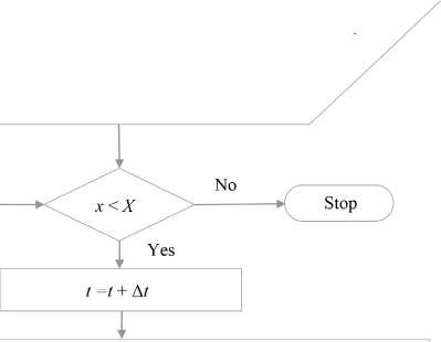 Назначение дальности X полета по оси Ох, шага А/ по времени и начальных значений при / = 0 переменных состояния: 0 = Р, о = 0, х = 0, z = hc при программном управлении и 0 = Р, о = 0, х = 0, z = hc, а = 0, о = 20 или 25 м/с при траекторном управлении остановка