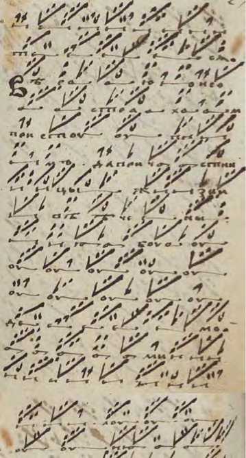 В композиции «Иже херувимы» на строгановских фелонях Дары в образе Бо-гомладенца на дискосе «подъемлются» руками шестокрылов, вполне возможно, под прямым влиянием понятой буквально лексемы unoSc^o^Evoi. Важной деталью письменной фиксации Херувимской в Обиходах до середины XVII в. можно назвать наличие ремарок типа «правый лик», «перенос» и киноварных прописных букв, которые делят текст песнопения на три раздела, маркируя лексемы «приносяще» и «подъемлюще» (рис. 2 )37.