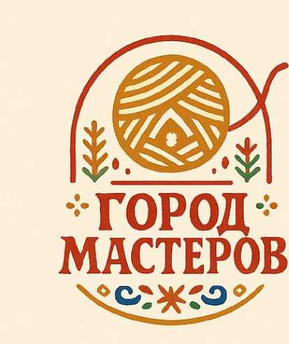 Символом «Города Мастеров» стал клубок ниток, который обладает двойной семантикой: с одной стороны это ремесленный инструмент, который напрямую отсылает к ткацкому ремеслу, а с другой – сказочный артефакт, нередко встречающийся в русских народных сказках. В сказочных сюжетах клубок часто выступает в роли навигатора, указывающего путь герою и приводящего его к цели. Именно этот образ подчёркивает смысловое ядро проекта: путь к знанию и мастерству. Нити клубка формируют схематичный дом – символ мастерской как центра ремесленной жизни. Арочная форма логотипа визуально напоминает проход, ведущий в ремесленный посад, а декоративные элементы отсылают к народной художественной традиции. Стилистически логотип вдохновлён сказочной графики начала XX века. Цветовая палитра включает тёплые охристо-красные и землистые оттенки, перекликающиеся с визуальной средой проекта. Логотип понятен и выразителен, поэтому хорошо поддерживает общий визуальный стиль пространства.