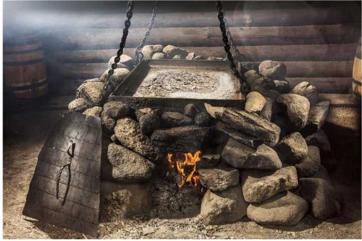 Особая зона группы — солеварня (№8). Это ремесленная точка, где в интерактивном формате демонстрируется процесс выпаривания соли. Для понимания визуального образа солеварни на рисунке 3 представлена фото-реконструкция, взятая из открытых источников.