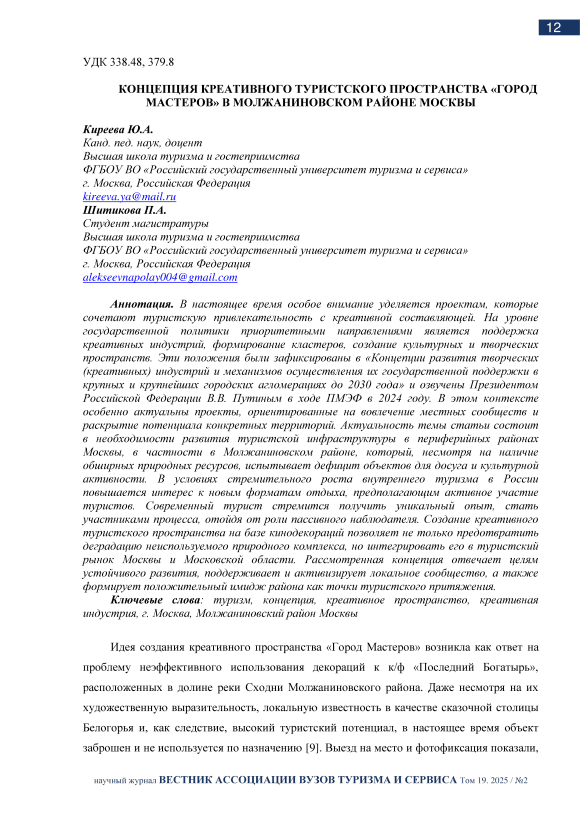 Текст научной статьи Концепция креативного туристского пространства «Город мастеров» в Молжаниновском районе Москвы