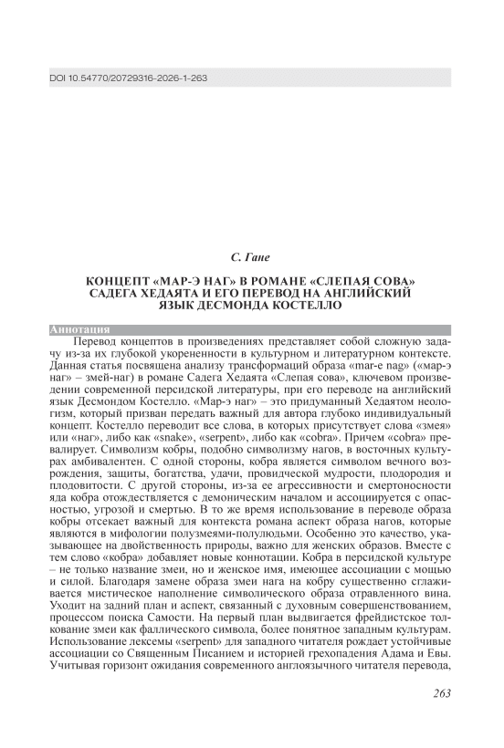 Концепт «мар-э наг» в романе «Слепая сова» Садега Хедаята и его перевод на английский язык Десмонда Костелло