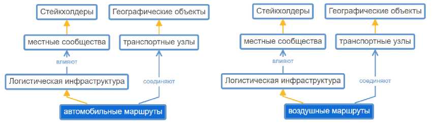 Рис. 11. Отношения индивидов логистической инфраструктуры онтологии: автомобильные маршруты, воздушные маршруты (составлено авторами).