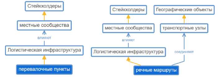 Рис. 13. Отношения индивидов логистической инфраструктуры онтологии: перевалочные пункты, речные маршруты (составлено авторами).