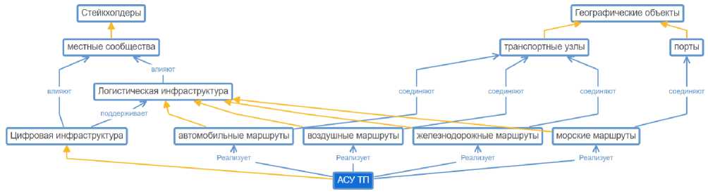 3.2. Связь « реализует »: автоматизированные системы управления транспортными потоками (АСУ ТП) сокращают затраты и время доставки.