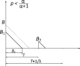 Особенностью рассматриваемого группового потока является то, что каждый последующий интервал между пачками возрастает на одинаковую величину T . Заявки в рассматриваемом потоке поступают пачками, причем количество заявок в каждой пачке представляет собой независимые одинаково распределенные дискретные случайные величины B k . Сумма интервалов времени имеющих экспоненциальное распределение с параметром λ и постоянного интервала времени T образует интервал времени между моментами прибытия последовательных пачек. Поскольку основной интерес представляет зависимость средней длины очереди в приборе обслуживания от его загрузки, а временной масштаб не важен, рассматриваемый квазипуассоновский поток можно описать двумя параметрами: B – постоянный размер пачки, α = λ T – отношение детерминированной паузы к среднему значению экспоненциального интервала.