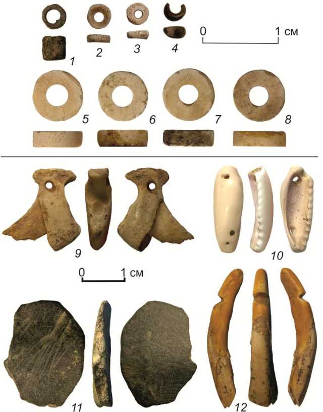 Fig. 2. Ornaments from Holocene deposits of Denisova cave: