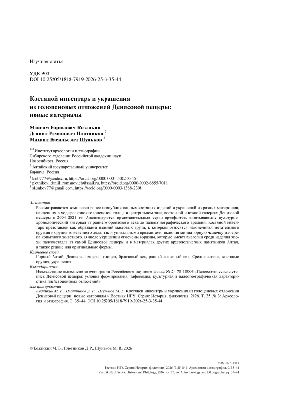 IDR: 147253537 | УДК: 903 | DOI: 10.25205/1818-7919-2026-25-3-35-44