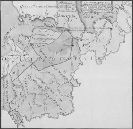 Рис. 1. Часть карты Санкт-Петербургской губернии Ф. Туманского (1790) 5 . Сомерская волость граничит с областью «Чюди» на западе и «Ижеры» на севере.