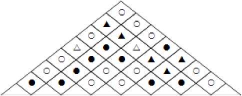 Примечание. • - сильная положительная связь; О - слабая положительная связь; ▲ - сильная отрицательная связь; △ - слабая отрицательная связь