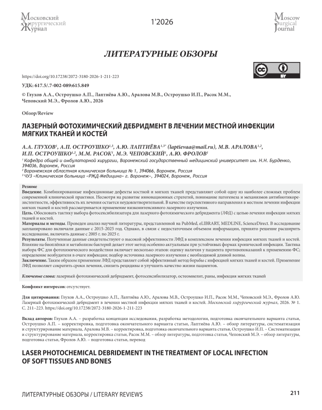 Лазерный фотохимический дебридмент в лечении местной инфекции мягких тканей и костей