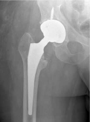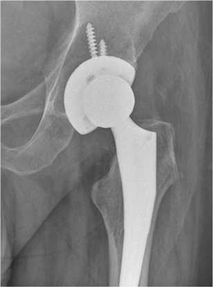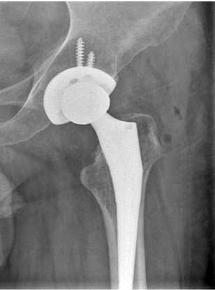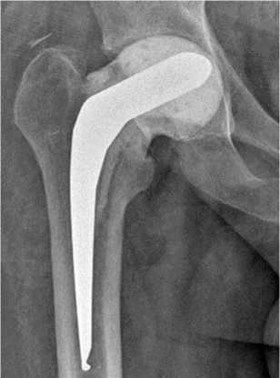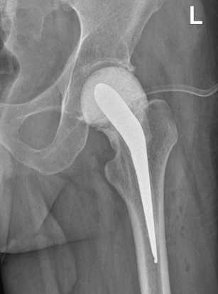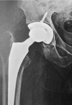 Рис. 8. Рентгенограмма левого тазобедренного сустава пациента Ш. через 12 мес. после операции тотального эндопротезирования левого тазобедренного сустава