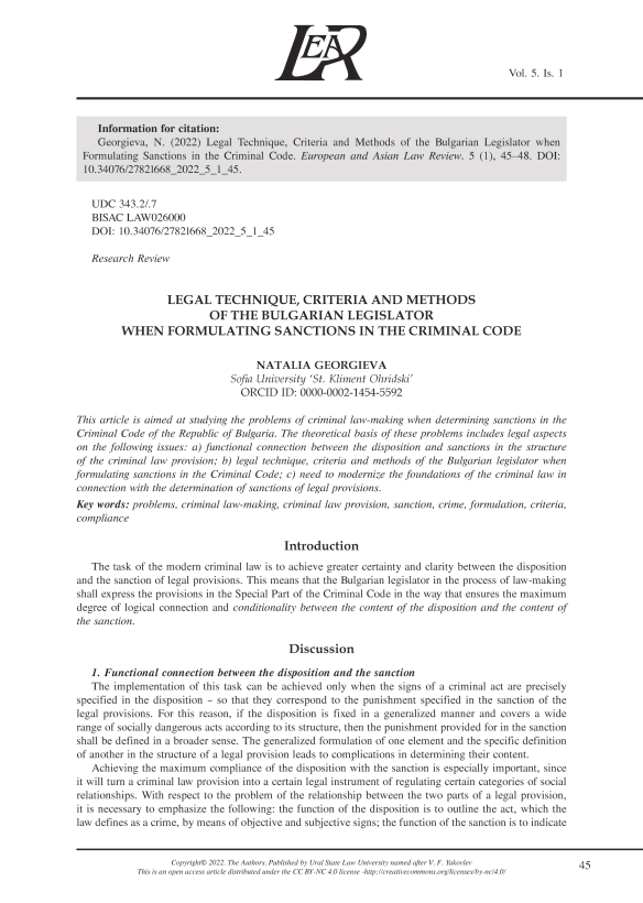 IDR: 14134847 | УДК: 343.2/.7 | DOI: 10.34076/27821668_2022_5_1_45