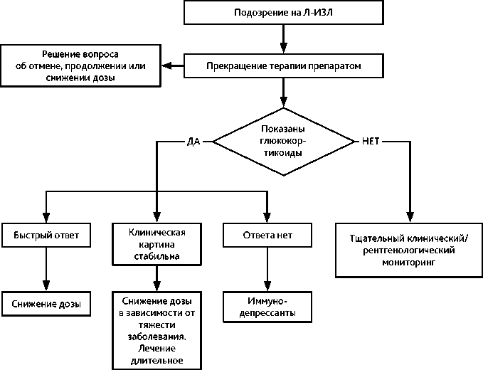Разрешение ИЗЛ: решение вопроса о возобновлении терапии; при необходимости — редукция дозы |