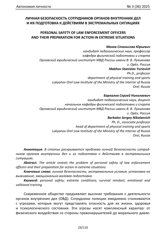 Личная безопасность сотрудников органов внутренних дел и их подготовка к действиям в экстремальных ситуациях