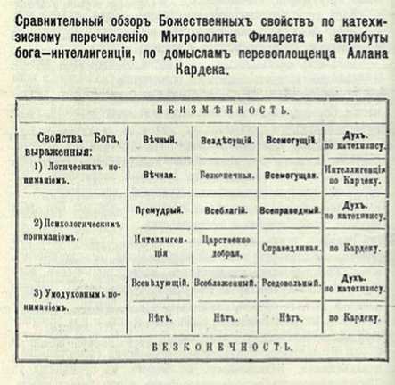 Таблица из книги М. Ф. Таубе «Современный спиритизм и мистицизм» (СПб., 1909. 241 с.)