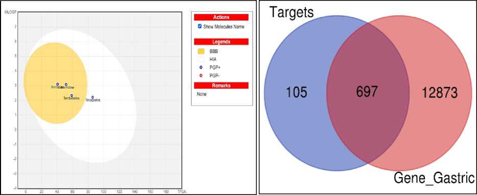 summarizes the findings, whereas Fig. 1A depicts the egg diagram. All of the polyphenolic compounds' predicted qualities meet all of Lipinski's five requirements, indicating that they have druglike potential.