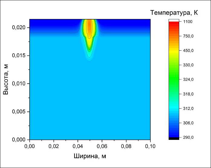 Рис. 3. Низовой пожар низкой интенсивности, размер частицы 0.003 м, материал частицы – древесина сосны, кожные покровы