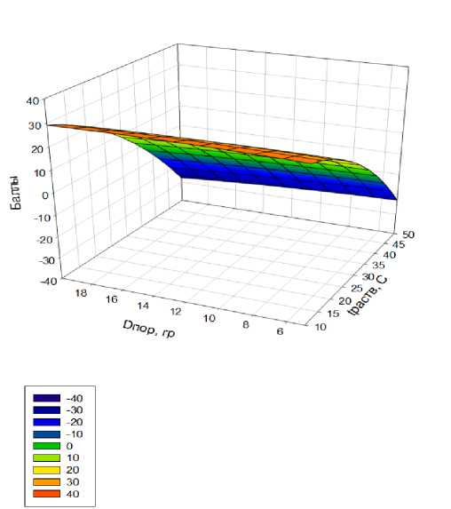 Y=28,4 р 908+0,0228 t раств +0,46618D пор -0,00954 t раств D пор 0,02084 t2 раств -0,0123 D2 пор