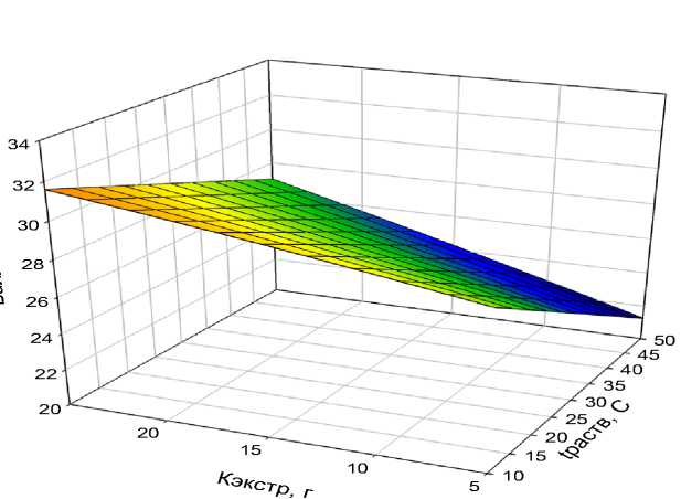 Y=29,667-0,1372 t раств +0,14822 К экстр +0,0034 t раств К экстр