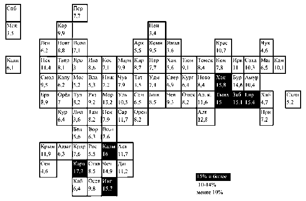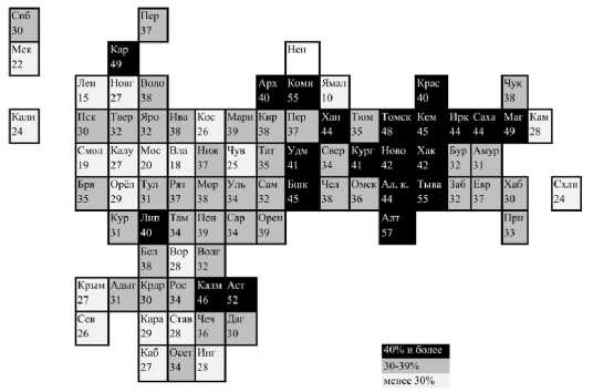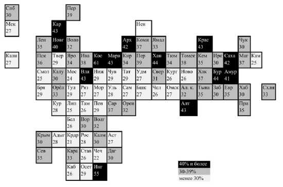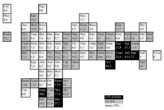 12 13Так, например, если в Краснодарском крае, Чеченской Республике и Московской области менее 25% студентов вузов охвачены стипендиями, то в Республике Ингушетия и Костромской области – более 50%. Если в Москве, Пермском крае и Республике Дагестан менее 35% студентов колледжей охвачены стипендиями, то в Республике Ингушетия, Брянской и Орловской областях – более 65%.