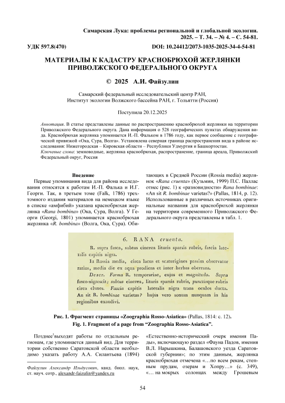 IDR: 148333009 | УДК: 597.8(470) | DOI: 10.24412/2073-1035-2025-34-4-54-81