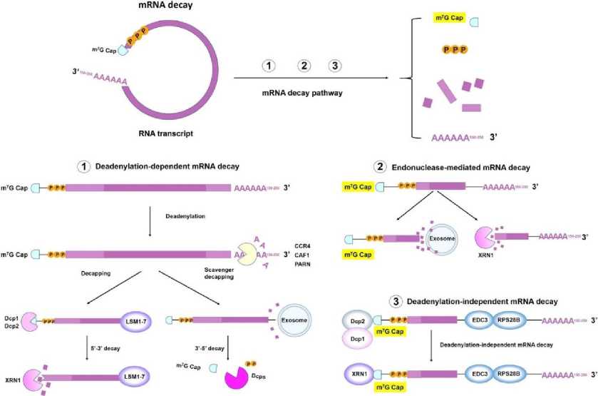 Рис. 3. Механизмы распада мРНК [14].