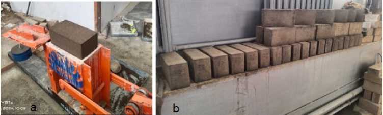 Fig. 2- Shows: a) CINVA-Ram machine, b) produced CSEBs Image by the author of the article