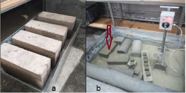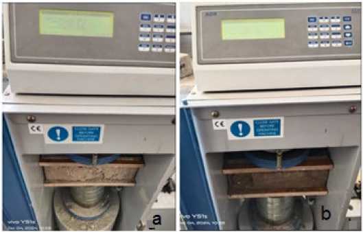 Fig. 3- Shows: the compression tests on CSEBs, a) dry state, b) wet state