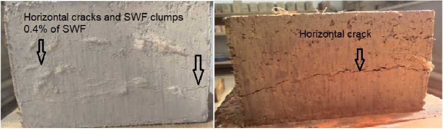 Fig. 7- Show Horizontal cracks in CSEBs due to more (0.4%) SWF inclusion and SWF clumps Image by the author of the article
