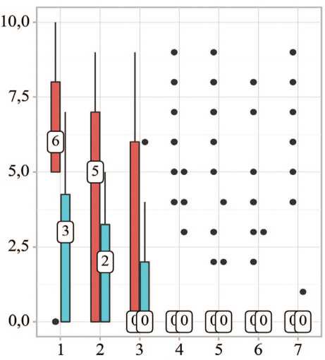 Выраженные различия отмечались при анализе временных параметров:медиана времени экспульсии фрагментов конкрементов в группе, получавшей α1-ад-реноблокаторы, составила 5 [4-7] суток против 7 [5-9] суток в контрольной группе ( p =0,010).