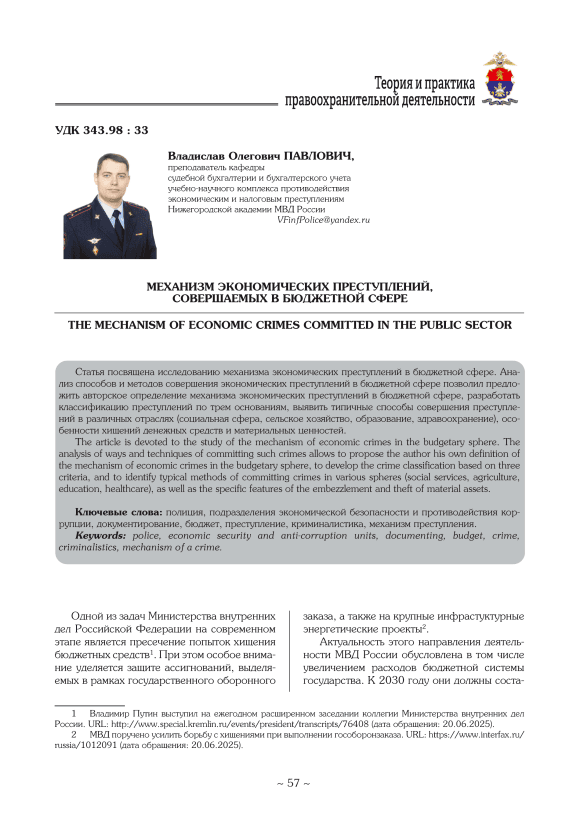 Полиция, подразделения экономической безопасности и противодействия коррупции, документирование, бюджет, преступление, криминалистика, механизм преступления