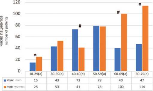 Age(yr) 18-29(л) 30-39(л) 40-49(л) 50-59(л) 60-69(л) 60-79(л) ■ мужчины ■ женщины men women