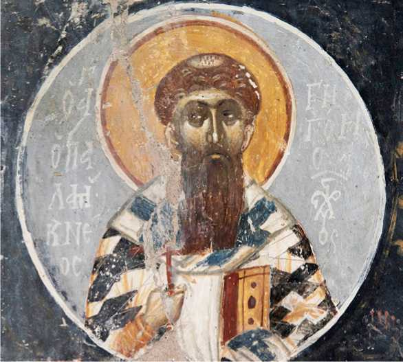 Древнейшее изображение свт. Григория Паламы в храме св. вмч. Георгия неподалеку от г. Касторья (Греция), 1368 г. Это год Константинопольского Собора, на котором архиеп. Григорий был прославлен