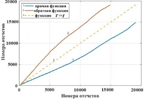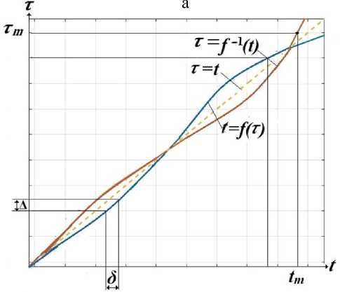 Рис. 5 . Прямая t = f ( τ ) и обратная τ = f -1( t ) функции шкалы времени фореграммы