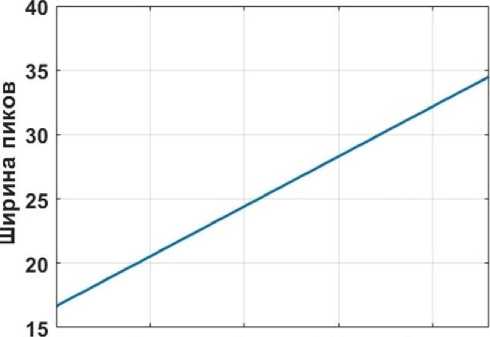 Рис. 4. Зависимость ширины пиков от номеров от- счета.
