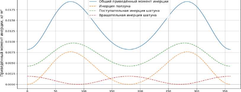 Рис. 3 . Приведённый момент инерции кривошипно-ползунного механизма (Reduced moment of inertia of the slider-crank mechanism)