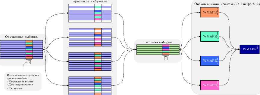 6) Пункты 2-5 повторяются для комбинаций значений признаков (например, исключение объектов с определенным направлением и определенным днем недели).