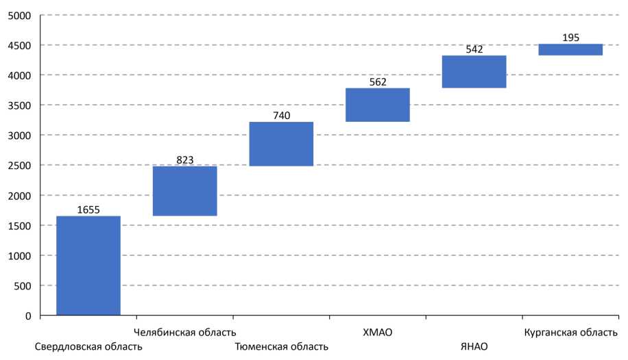 С целью рассмотрения внутриокружной динамики отдельно выделим тенденции в реализации инвестиционных проектов в Уральском федеральном округе в 2024 году ( рис. 5 ).
