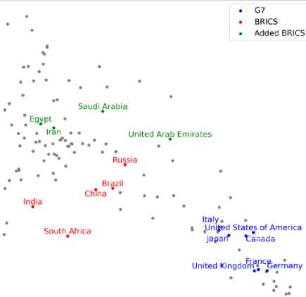 Таким образом, можно сделать предположение о том, что индекс EPI в первую очередь отражает взгляды ведущих европейских стран на экологическое развитие. Здесь следует обратить внимание, что все страны G7 находятся в кластере с наилучшими трендами, а страны BRICS распределены по кластерам с худшими и средними показателями.
