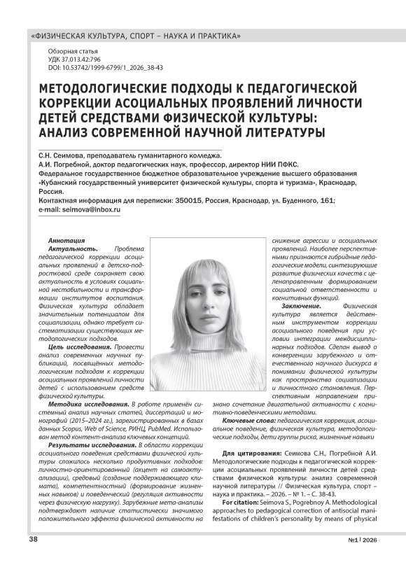 Текст обзорной статьи МЕТОДОЛОГИЧЕСКИЕ ПОДХОДЫ К ПЕДАГОГИЧЕСКОЙ КОРРЕКЦИИ АСОЦИАЛЬНЫХ ПРОЯВЛЕНИЙ ЛИЧНОСТИ ДЕТЕЙ СРЕДСТВАМИ ФИЗИЧЕСКОЙ КУЛЬТУРЫ: АНАЛИЗ СОВРЕМЕННОЙ НАУЧНОЙ ЛИТЕРАТУРЫ
