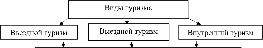 Итак, на рисунке представлены виды туризма, рассмотрим их более подробно: внутренний туризм - путешествия по стране лиц, постоянно проживающих в ней, выездной туризм-путешествия лиц, постоянно проживающих в России, в другую страну, а въездной туризм - путешествия по России лиц, проживающих постоянно в других странах.