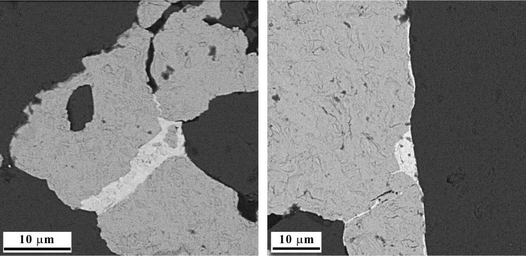 Рис. 2. Прожилки и каймы замещения штольцита (светло-серое) по шеелиту. СЭМ