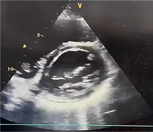 Рисунок 4. Эхокардиография пациента А., 38 лет с миокардитом. Парастернальная позиция, короткая ось на уровне митрального клапана
