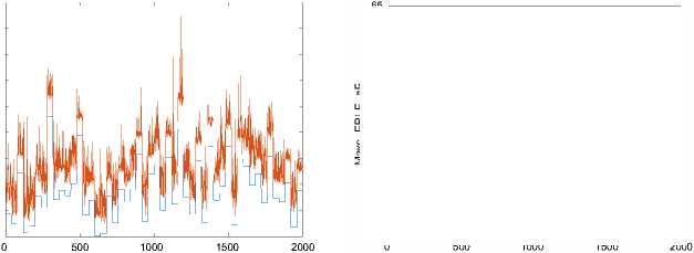На рисунке приведены результаты сравнения выходных сигналов моделей, соответствующие 1333 входным векторам. Для симуляции работы исходной и целочисленной нейронной сети LSTM на вход моделей Simulink подавались временные последовательности с векторами признаков, состоящие из 48 коэффициентов на каждый отсчет. Из рисунка 7 видно, что полученная целочисленная модель нейронной сети выполняет адекватное формирование коэффициентов коррекции для частотных поддиапазонов спектра. При этом их значения находятся в интервалах, которые соответствуют времени присутствия остаточного эха.