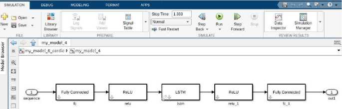 Из рассмотренных нейросетевых архитектур была использована LSTM. Выбор обусловлен ограниченной поддержкой типов нейронных сетей. Начиная с версии R2024b в Matlab представлена функция exportNetwork-ToSimulink, позволяющая выполнить преобразование нейронной сети в модель Simulink.
