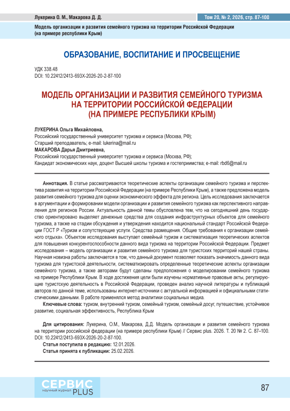 Model of organization and development of family tourism in the Russian Federation (on the example of the Republic of Crimea)