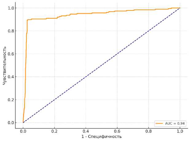 Высокое качество построенной модели подтверждается и результатами ROC-анализа (рис. 1).