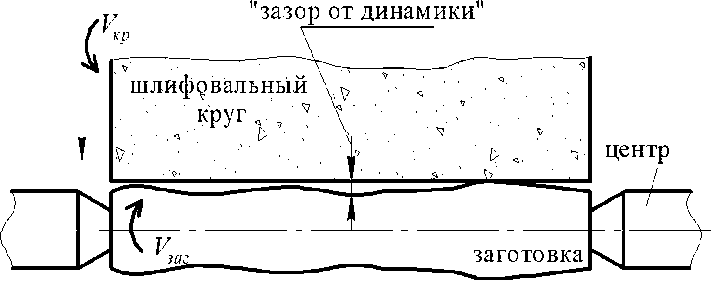 Рис. 2. Схема положения «зазора динамики» между кругом и заготовкой (величина зазора на рисунке сильно завышена для наглядности)