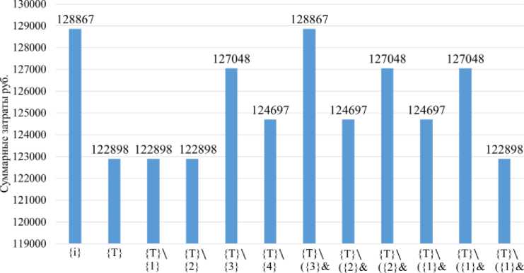 Рис. 4. Суммарные затраты на энергоснабжение активных потребителей в кооперациях Fig. 4. Total costs of energy supply to prosumers in cooperatives
